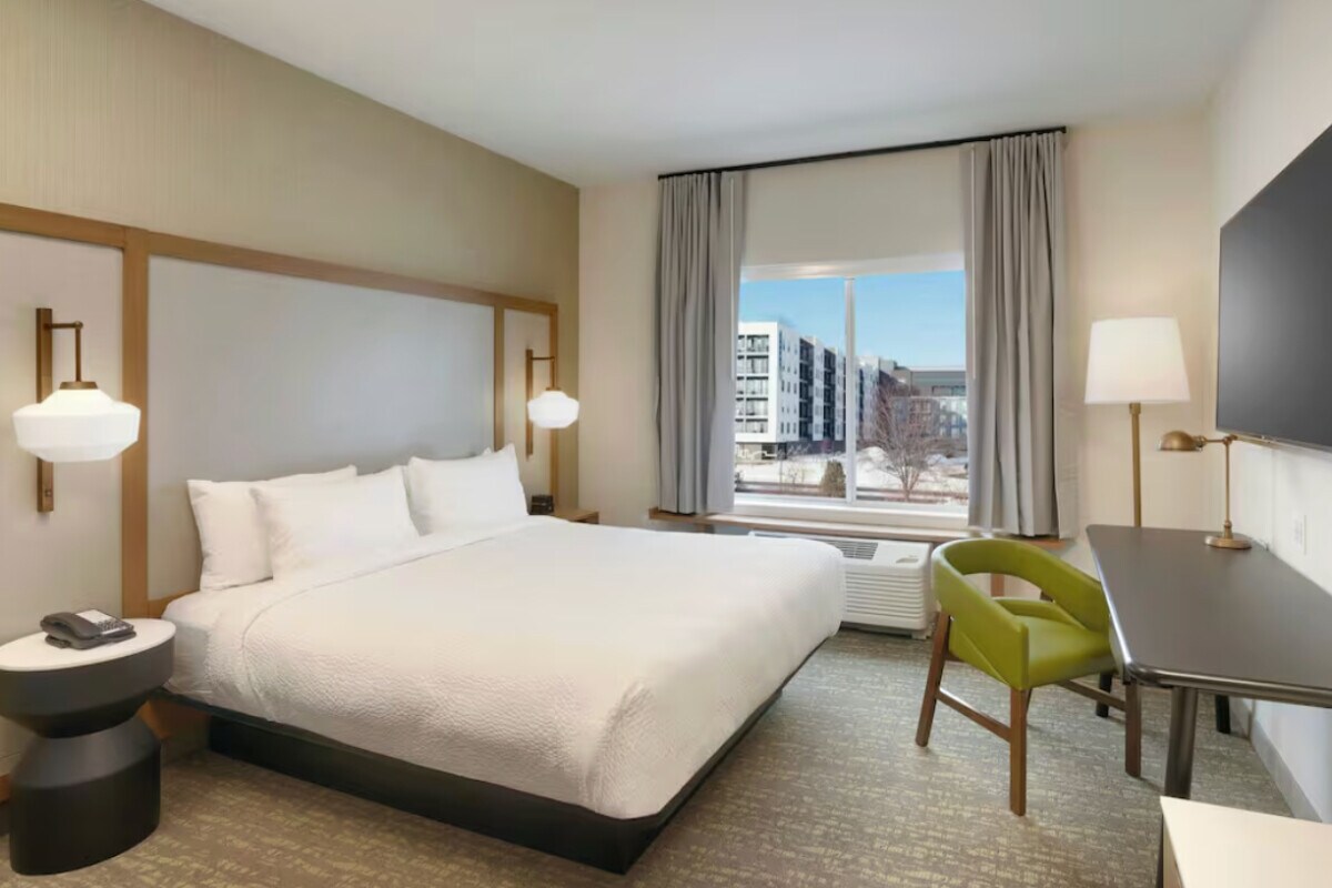 This serene King room offers sweeping views of the Rockies, just minutes from Westminster trails and Denver sights. It features soft linens, a spacious layout, and natural light to help you unwind. An excellent choice for couples chasing both comfort and scenery.
