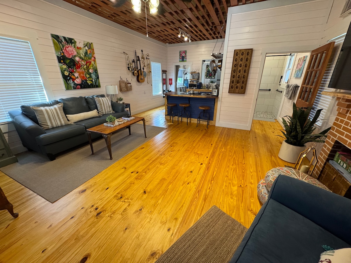 This special place is close to everything, making it easy to plan your visit. Discover this fully renovated 1926 two-bedroom gem in the heart of Monticello, Florida. Named for one of two schoolhouses originally associated with the church now housing Monticello’s Chamber of Commerce, the home still reflects its history. From reclaimed hardwood floors to refurbished original windows, doors, and moldings, you can experience the best of modern amenities and historic charm.