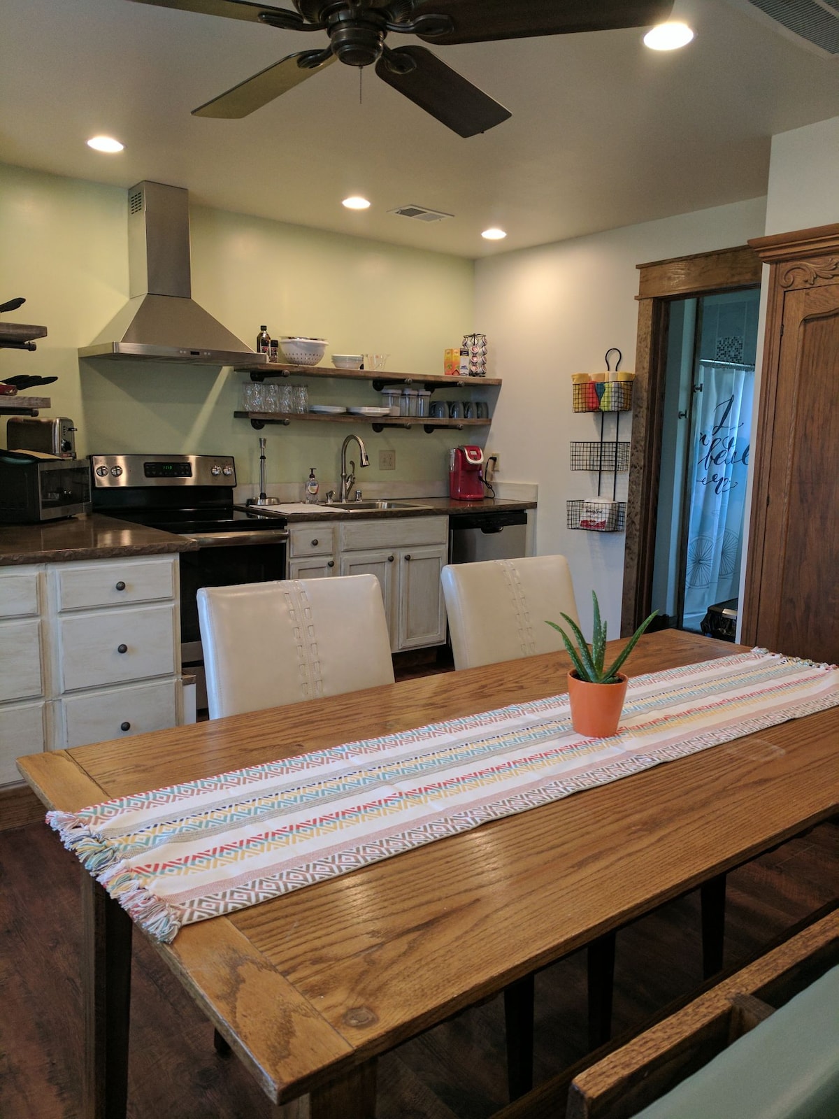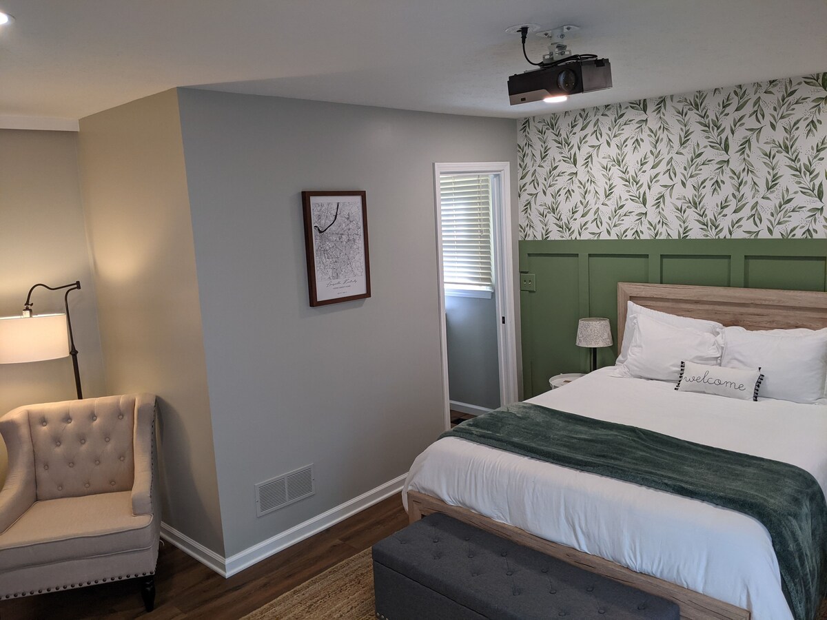This suite is a beautiful private retreat complete with a projector for watching your favorite streaming service for the ultimate movie night. Centrally located and within 10-20 minutes of numerous local hospitals, universities, as well as various restaurants and downtown destinations, our guest suite offers a peaceful retreat in a convenient and safe location. We also provide a fold out desk that guests can use for a remote work space if desired.