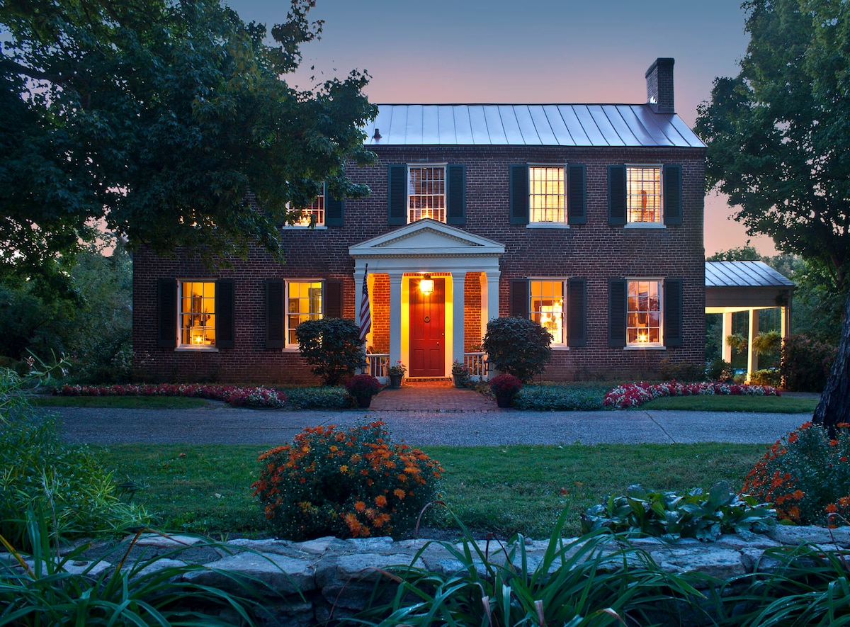 Elegant 3 story mansion located on 8 acres off a quiet paved farm road. We offer 3 unique and beautifully decorated bedrooms. Please click on each separate listing for their descriptions and pictures. Colorfully landscaped, surrounded by mature trees with a 1/2 acre stocked pond. Ample parking with easy highway access to Churchill Downs, bluegrass horse country, the Outlet Mall of the Bluegrass, the Bourbon Trail, convention centers, Kentucky State Fairgrounds, and downtown attractions.