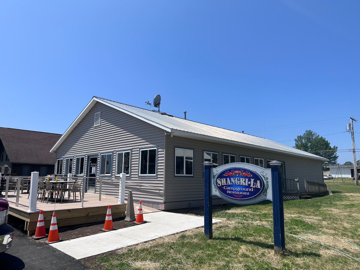 Shangri La Hotel located in Shangri La Campground and Marina is newly renovated and ready for guests! Rooms feature private bathrooms and sleeping accommodations for the whole family. Restaurant next door and footsteps from the water.