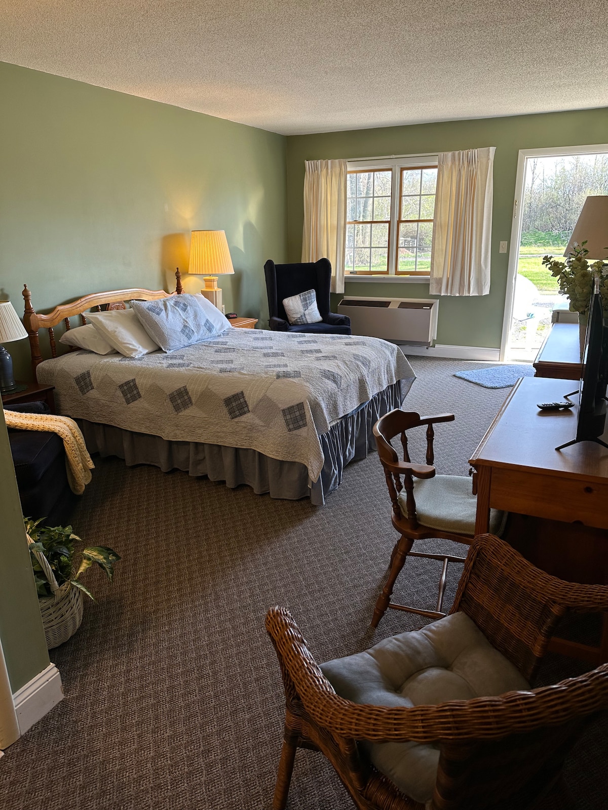 Room 2.. Bright airy room with a queen size bed, mini fridge, microwave and coffee pot, sparkling clean roomy bathroom with a walk-in shower . You will feel right at home the minute you walk in the door! Outside you’ll find the year round Channel Marker 243 restaurant with a beautiful outdoor seasonal patio bar and fire pit. You’re just a quick walk to the village where you’ll find a coffee shop, supermarket, ice cream shop, liquor, store, shops,and of course the beautiful St. Lawrence river