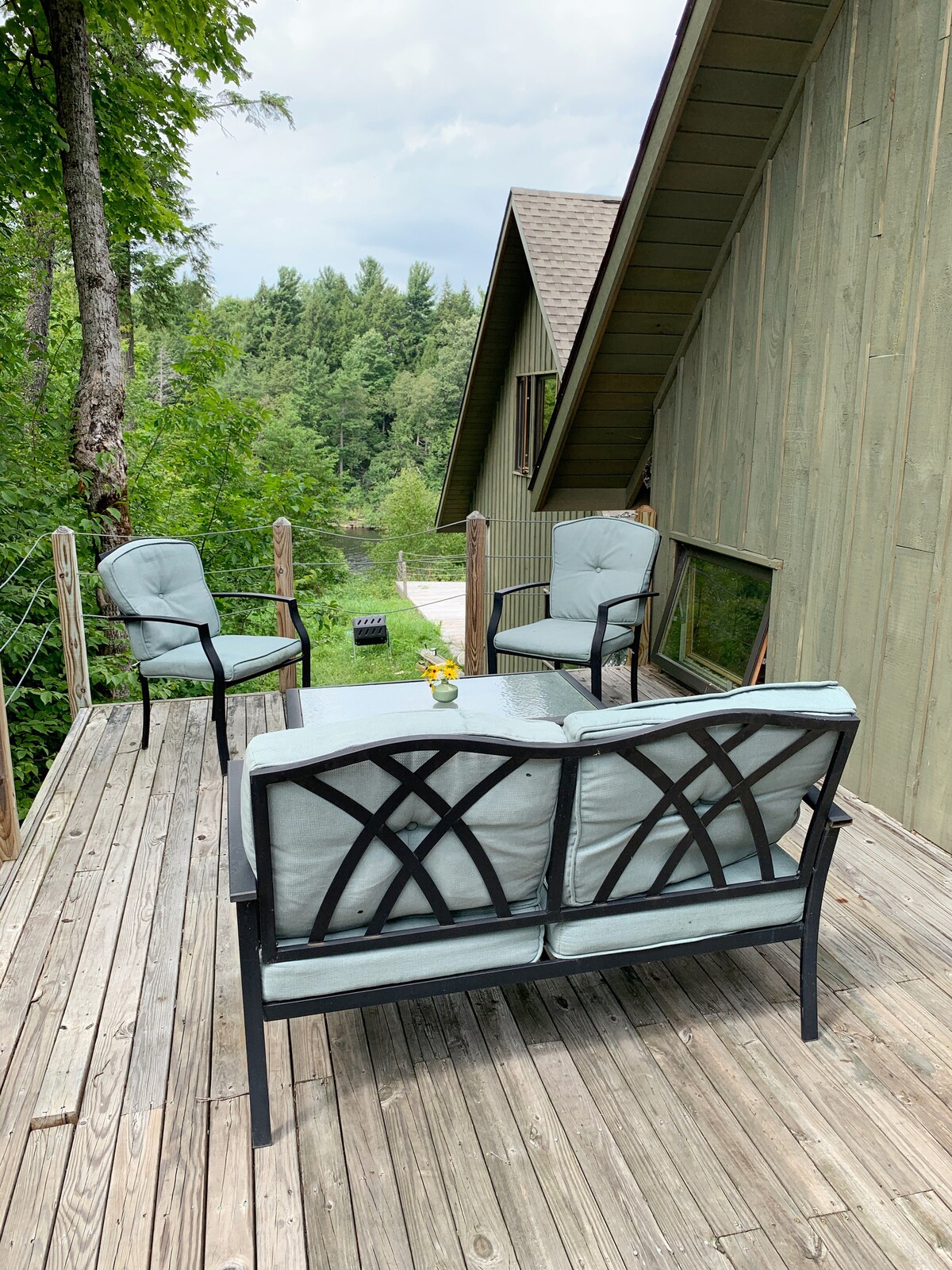 Stunning retreat from the city, with beautiful natural lighting, surrounded by nature right on quiet gorge of the Black River. Perfect for a couple. Includes a sauna. Ideal for a artists or people seeking retreat Walk down to the river to swim, kayak, paddle board, or book a White Water rafting trip! 7 miles from Lake Ontario, 15 from 1000 Islands. Stunning in the summer, spectacular in Autumn and Winter is a wonderland for cross country skiing . Massages can be available. Book in advance.