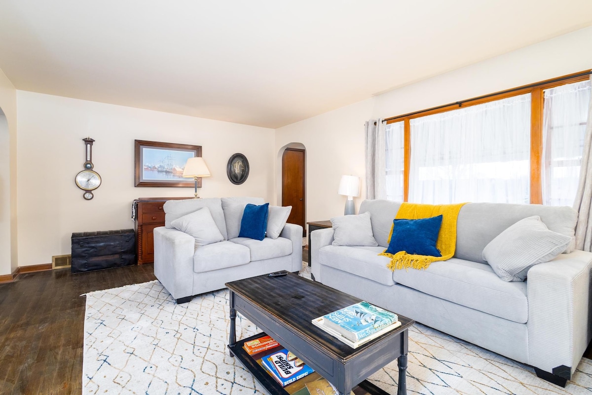 Our family worked to restore this arts and craft style home with the hope that it will be a peaceful place for guests to stay and enjoy quality time together. We hope that you make memories playing shuffleboard, board games, or retro video games; escaping up to the whimsical loft accessed via a spiral staircase to read a good book; making a meal together in the kitchen complete with 2 restored retro Thermador ovens; or relaxing by a fire in the fenced-in back yard!