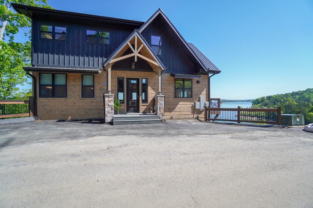 Welcome to Lake Life Barndo in Dandridge, TN, a 3-bed, 2-bath barndominium blending modern comfort with lake house charm. The spacious kitchen, with a 9-seat island, opens to breathtaking views of Douglas Lake and the Smoky Mountains. Enjoy outdoor dining and a gas grill. The vibrant decor reflects a modern twist on the traditional lake house. Starting Feb 2024, unwind in the hot tub and by the firepit overlooking the lake. Indoor and outdoor games cater to all ages. Kayaks available in summer.