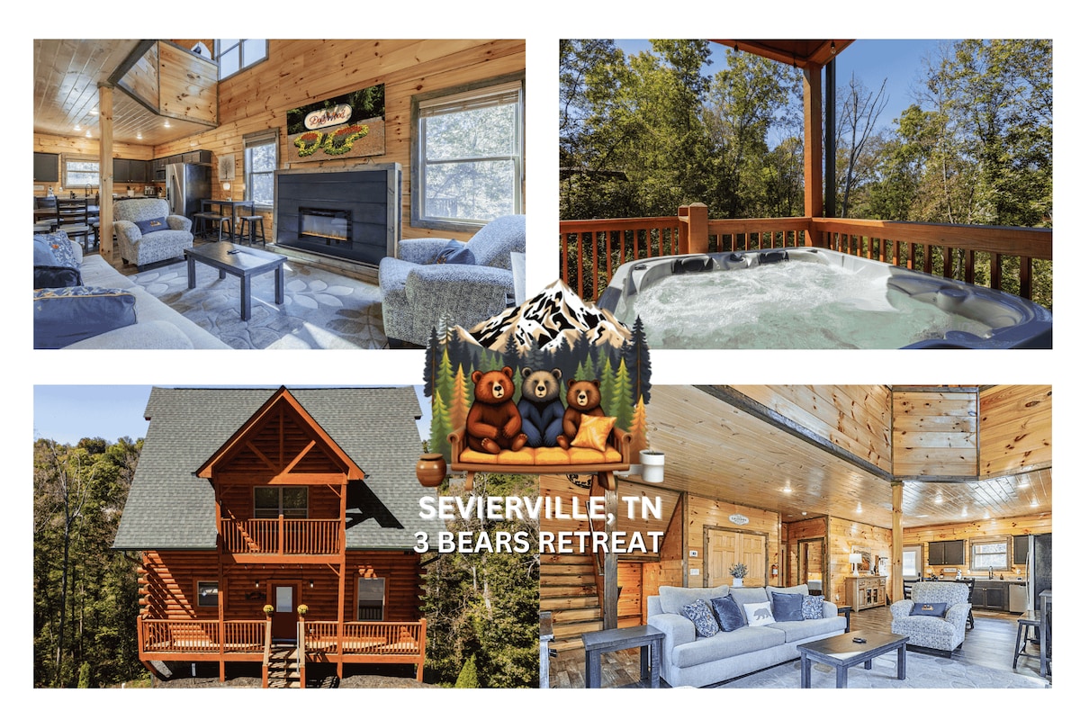 3 Bears Retreat Cabin Overview About the Space 3 Bears Retreat is a spacious cabin nestled in the scenic Smoky Mountains, offering breathtaking views and an ideal location just 20 minutes from Dollywood, 10 minutes from The Island, and only 3 minutes from Soaky Mountain Park. Guests can unwind on the covered deck, relax in the hot tub, enjoy the outdoor swing, or take a dip in the private swimming pool. The cabin also features an infrared sauna for rejuvenation.