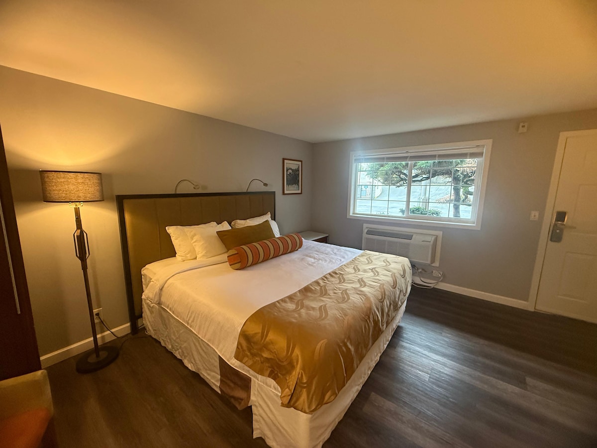 Wake up to views of downtown Port Townsend in our seaport boutique hotel! This second-floor room offers one queen bed, full private bath, HDTV, small refrigerator, microwave, in-room coffee/tea service. There is free Wi-Fi and on-site parking. Hair dryer, iron with board. Located in the heart of Port Townsend's cultural and historic district, the Swan is adjacent to Point Hudson Marina and just steps away from educational programs at the Northwest Maritime Center.
