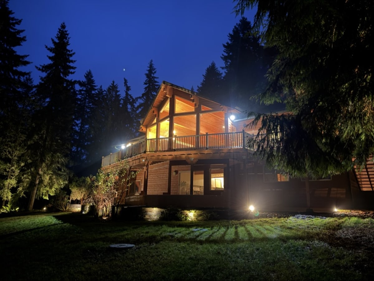 Funky 70s PNW bungalow Enjoy views of Mt. Olympus with floor to ceiling windows in every room while thoughtful planting provides privacy. Dogs will love this open fully fenced yard. Well stocked kitchen with plenty of tupperware and large butcher block island. Separate yoga/workout studio. Parking for 3 vehicles. Indoor amenities: Sauna, soaking tub, wood burning fireplace, skylights, W/D Outdoor amenities: Hot tub, gas grill, large sun deck