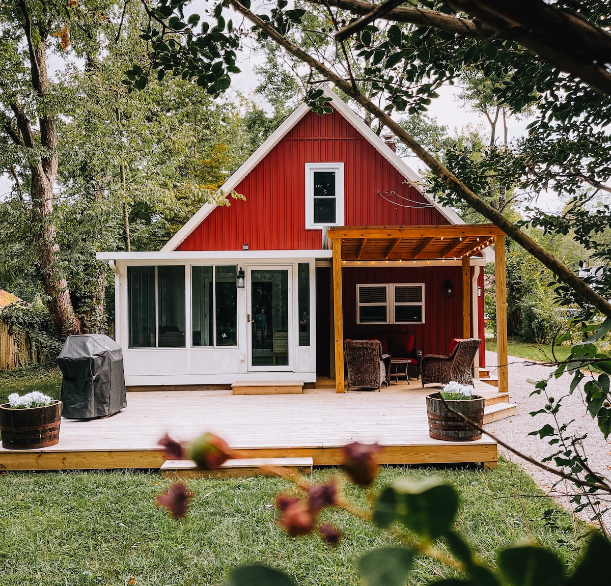 💖 Escape the city buzz without leaving Louisville. Wake up to 15 acres of rolling hills, explore mowed walking paths, and unwind on your private deck by the fire pit. Perfect for nature lovers and 'Louisville Loop' cyclists looking for a cozy, intentional stay. Experience the charm of country living—you’ll hear the occasional train and see our resident groundskeeper (my dad, Martin!) tending to the land.🌙🌿