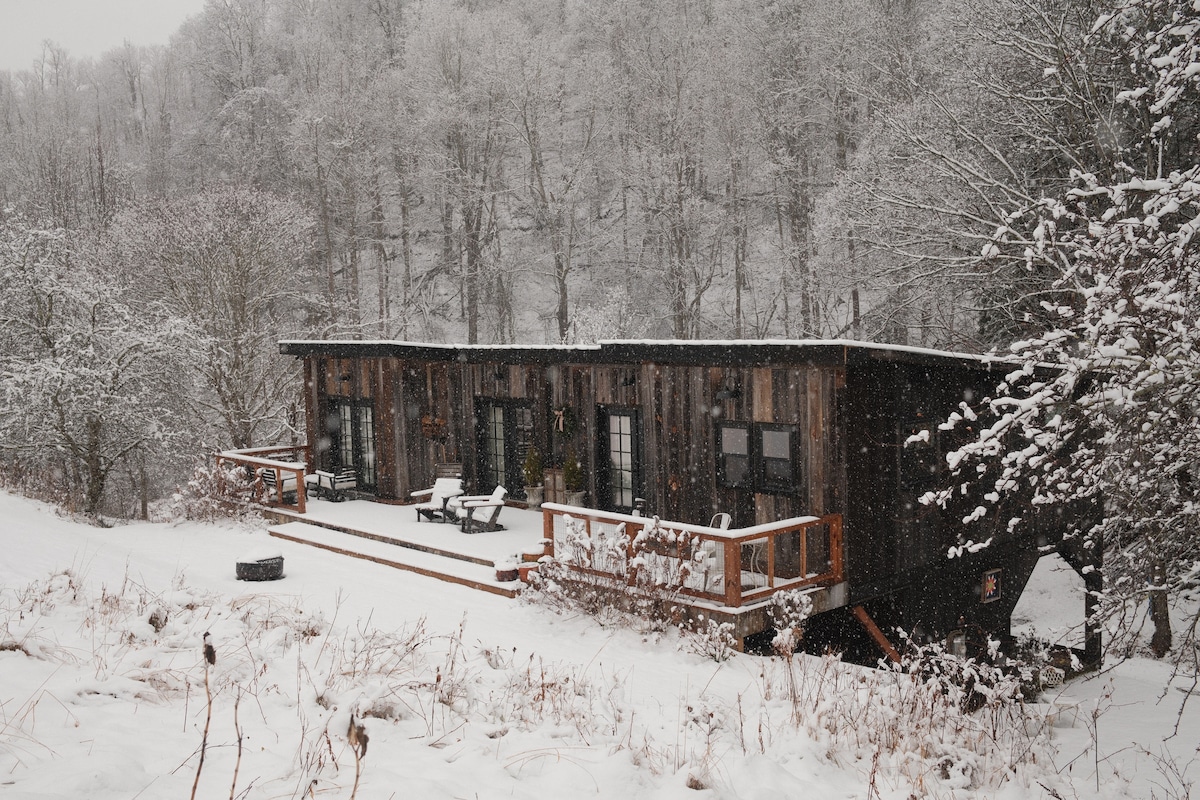 Our space, a custom build from HGTV-featured tiny house builder Randy Jones, is on a ridge with unparalleled, 270-degree views of Grandfather Mountain, all three area ski resorts, on into Tennessee and Virginia's Mount Rogers. We're located 20 minutes from Boone and 15 to West Jefferson, and even closer to the Blue Ridge Parkway and New River activities like fishing and tubing. If you've considered downsizing, or you just want to give living tiny a try for a getaway, this is the place!