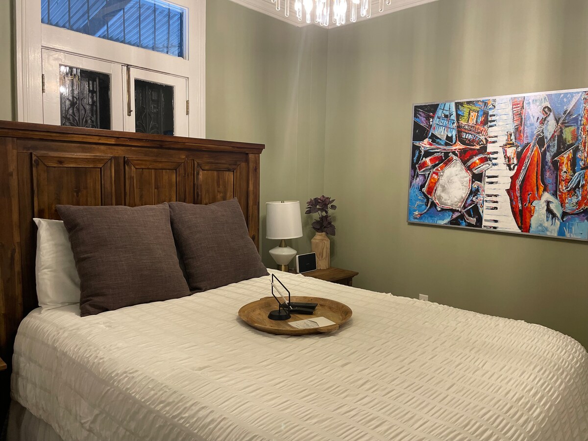 Pelican Room at Penelope's B&B is a large private Queen Bedroom with a private full bath in main hallway. Located in the Historic Vibrant Treme Neighborhood just blocks away / walking distance to French Quarters and World Famous Bourbon St. Our Pelican Room Features a 40" SMART TV w/ digital channels and is equipped with a refrigerator and microwave for your convenience. The room is artistically decorated for your comfort and convenience. My Pleasure!!!