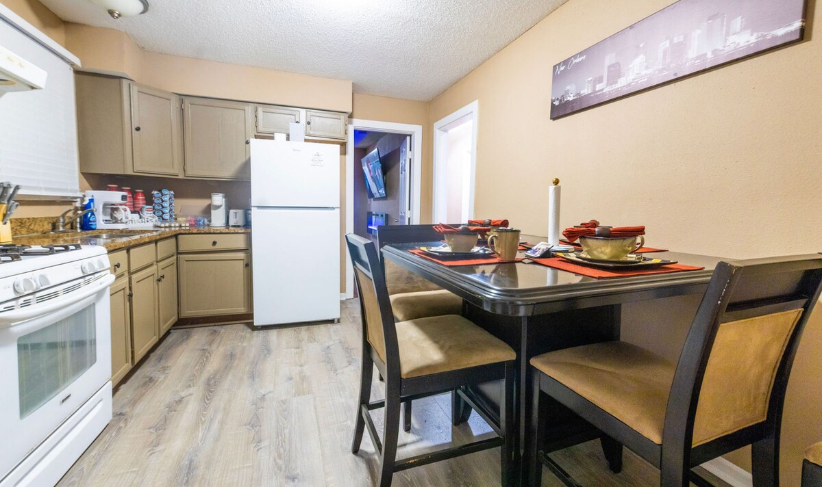 A neighborhood home that is extremely convenient and close to all of the fun and excitement, yet only 12 minutes from the hustle, bustle of the city! We are located in a quiet and safe suburb home with parking for many vehicles. The streetcar (trolly) is only 4 miles away which travels to the city of New Orleans; the city that never sleeps! My home is equipped with a coffee pot, coffee, creamer, sugar and other sweetners. I also offer coke,diet coke,sprite and bottle water. There's a microwave, crock pot and a refrigerator, as well as utensils, dishes and other essentials for your convenience. We are in walking distance to a convenience store, a daiquiri shop and the Chalmette National Battlefield. Within a half mile radius there is the famous Rocky & Carlo's restaurant, a hospital, grocery, Wal Mart, laundromat, post office, banks, casino, local hot spots, and a park just to name a few!