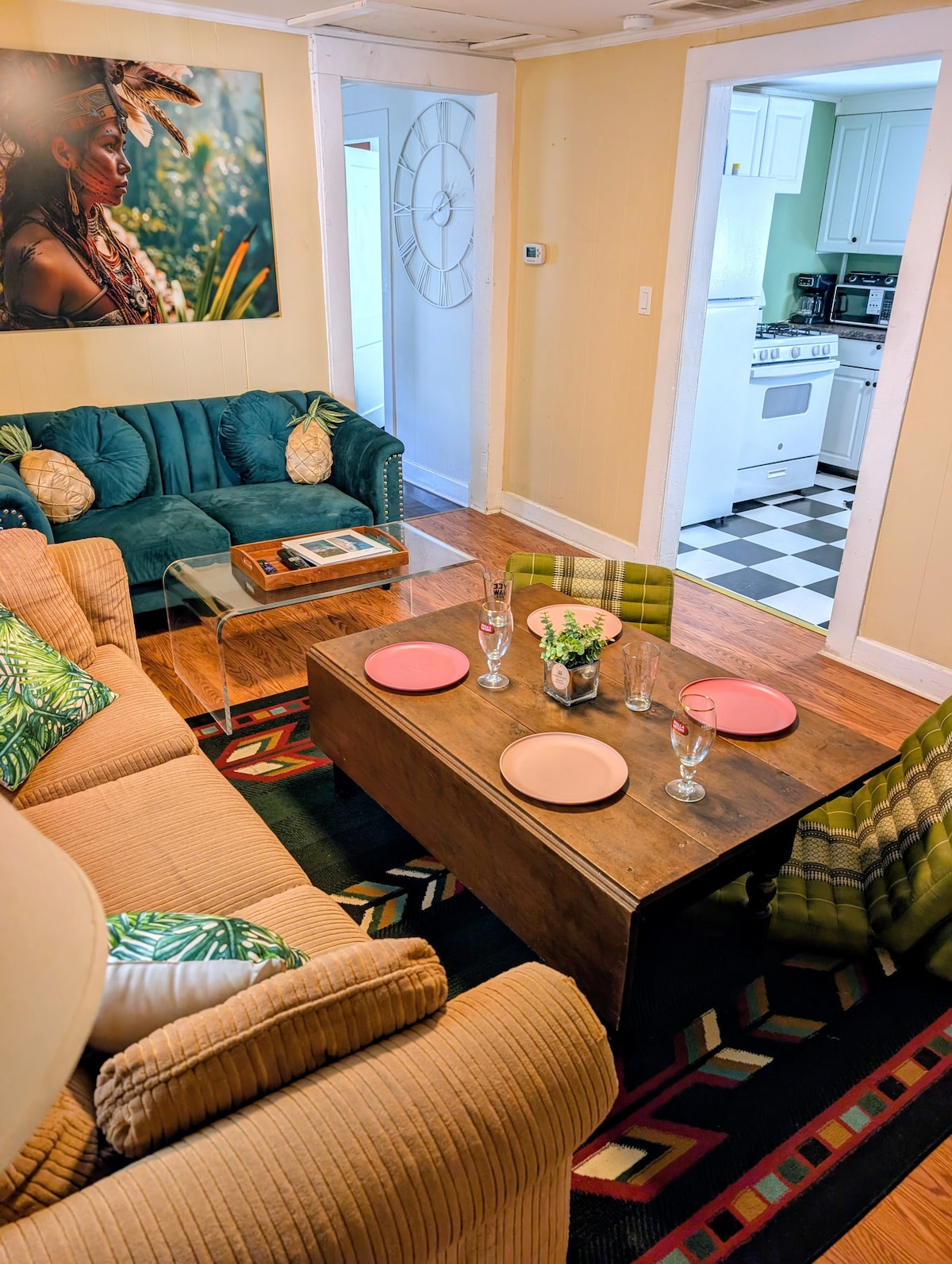 Welcome to Progress Park! A true getaway for fun! Located on a 12 acre Airstream Glamping resort w/ a 2 acre swimming pond. Sleeps 8 comfortably in the beds with 2 leather futons. Enjoy all the luxuries of home w/ added amenities such as a custom game room & luxurious backyard with TV, firepit & grill. Relax, unplug and reconnect in our little slice of heaven. Progress Park has 8 total units on site. 2 houses, 5 airstreams & a bunk house. *DERBY IS A MIN THURS-SUN REQUIRED
