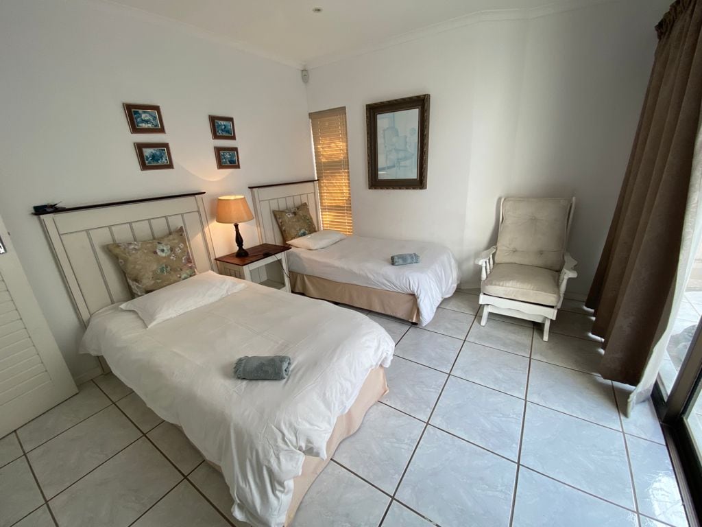 3 Storey spacious home with expansive sea views. Featuring: 5 en-suite rooms, each with their own TV & air-con. 2 Lounges, 1 with a library area and the other with TV & bluetooth entertainment system leading to a large equipped kitchen, indoor & outdoor dining space with BBQ/Braai facilities. Each sea view balcony has 2 sun loungers and seating. Secure parking with gate remotes. Backup system in place for loadshedding.