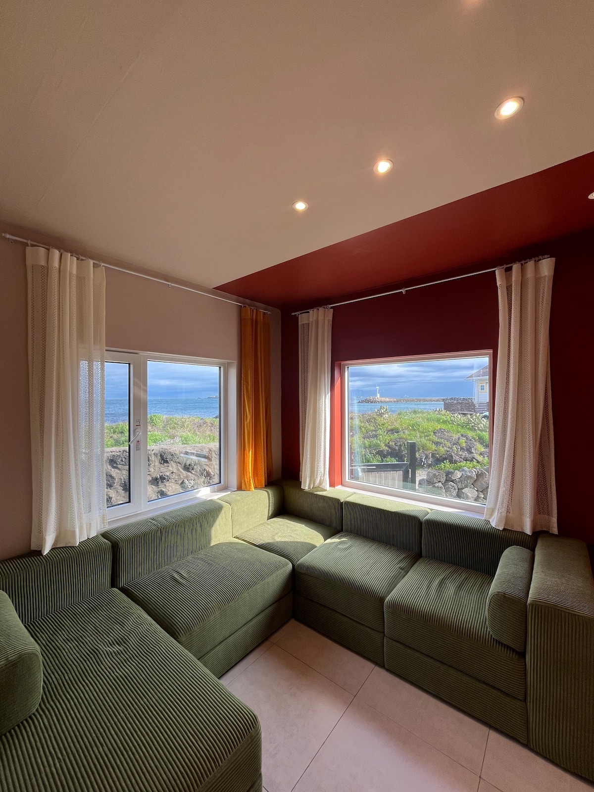 해안도로 앞, 올레길 근처에서 제주자연의 원시 풍경을 편안한 실내에서 한눈에 담으며 쉬어 가세요. 깨끗하고 편안한 실내에서 때로 거칠게 변화하는 바다의 풍경과 자연을 느낄 수 있어요. 실내와 야외 욕조의 따뜻한 물에 몸을 담그고 지친 몸을 힐링할 수도 있어요. 가까운 해수욕장을 찾아 해수욕, 산책을 즐길 수도 있어요. Located near the coastal road, this beautiful seashore offers opportunities for walking, riding, and driving. Relax indoors in a clean and comfortable environment, enjoying the scenery of the ocean, fields, wind, and the natural stone walls of Jeju Island. Enjoy a warm bath in the indoor and outdoor bathtubs.