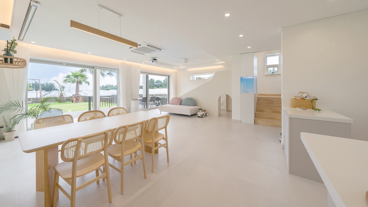 Emerald Gimnyeong 120 pyeong整栋私人住宅,就在海边,宽敞的草坪, Olle Trail 20球场