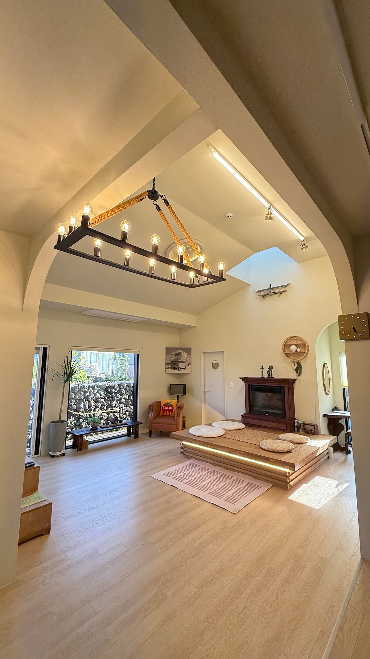 True to its name ("Stay Below the Mountain"), relax at our eco-friendly, custom-built "Red Brick House" while listening to the sounds of nature, right beneath Gunsan Oreum. Enjoy high ceilings, a cozy loft, and a private deck with Mt. Hallasan views & sunsets. ✨ 📍 Perfect Location • Located on Olle Trail (Route 9). • 3-min walk to Gunsan Oreum trailhead. • 2-min drive to the main road. 🔥 Amenities • BBQ, Fireplace (Bonfire), & Jacuzzi. • Stargazing at night. 💬 We are fluent in English!