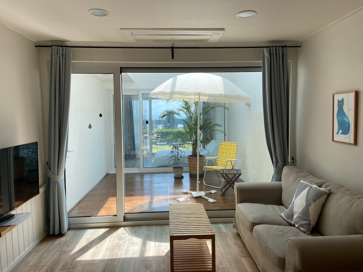 距离济州机场10分钟,距离海边2分钟步行路程。位置优越的舒适住宿,10分钟到机场。