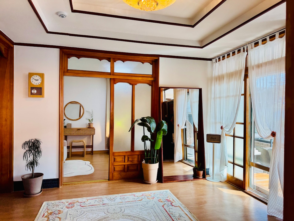 기준6명/최대10명 ‘순이네살레’ 제주의 옛 정취를 고스란히 간직한 구옥을 리모델링하여, 한국의 멋과 제주스러움을 함께 담아 낸 펜션입니다. 내부는 따스한 레트로 감성이 담긴 목재 가구들로 구성되어 있으며, 구옥의 정서를 더 깊이 느낄 수 있도록 다양한 소품들을 하나 하나 직접 채워 넣었습니다. 외부 마당에는 게스트분들의 건강을 생각해 맨발로 걸을 수 있는 화산송이가 고르게 도포되어 있습니다. 화덕에서는 가마솥뚜껑 BBQ와 불멍을 즐길 수 있고, 텃밭에서는 직접 키운 허브와 채소를 수확해 맛볼 수도 있어요.. ‘살레’는 사랑채를 뜻하는 제주 방언입니다. 손님을 맞이하고 마음을 나누는 공간으로, 게스트님이 더없이 편안하고 따뜻한 시간을 보내시길 바라는 마음을 담았습니다. 목수셨던 할아버지께서 손수 튼튼하게 지으신 ‘살레’. 별이 쏟아지는 낭만 가득한 서귀포의 중심에서, 공간 그 자체가 하나의 경험이 되어 편안함과 마음의 휴식을 느끼는 여행이 되시길 바랍니다.