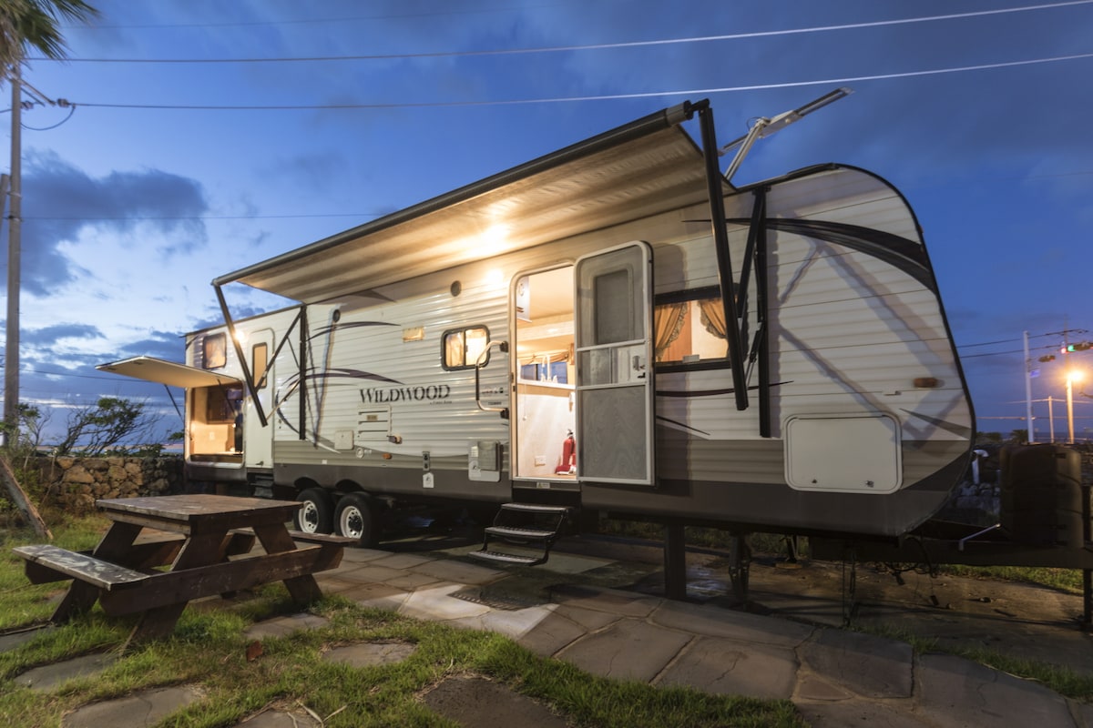 " 바다가 한눈에 보이는 최고급 초대형 수입카라반 캠핑장 " 메이더카라반 캠핑장 앞으로 펼쳐지는 에메랄드 빛 제주 바다의 아름다움을 만끽하실 수 있습니다. 카라반내 욕실,주방,개별테크내 바베큐가 가능합니다.