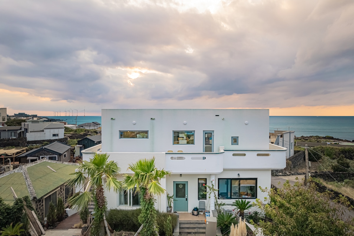 โExperience the slow life of Jeju at 'Pongnang Shade'. Located near Gonae Port in Aewol, our private 2-story villa features a massive 130-pyeong grass garden and ocean views. โโข Private Space: Entire house for one group (4 Bedrooms, 3 Bathrooms, 1 Living Room). โข Dining: Large 10-person table & BBQ terrace, perfect for groups. โข Best For: Large family trips, workshops, or getaways with friends. โWalk to Olle Trails (Courses 15 & 16) and enjoy undisturbed rest in your own private sanctuary.