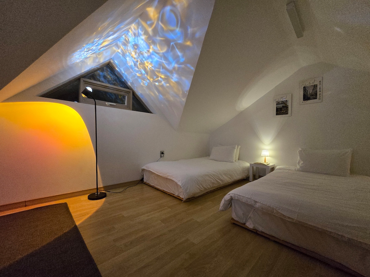 도보로 5~6분거리에 애월 고내 포구와 16코스 올레길. 석양이 아름답고 예쁜cafe, 맛집등이 즐비한 해안도로가 있고, 먼바다 와 한라산, 고내봉이 보이는시땅 (Sea-ddang)펜션 입니다. 2층으로된 4개의 객실, 101호, 102호, 104호, 105호./다락방이 있는 복층구조 객실 106호/원룸형 객실 103호실 총 6개 객실이 있습니다. 비앤비에서는 각 객실마다 따로 등록합니다, 방이 없을때는 다른방을 검색하세요. #102호는 2층으로된 객실입니다. 1층은 소파베드가 있는 거실 및 주방, 테라스, 화장실 2층은 더블 침대가 있는 침실로 바다쪽 테라스와 고내봉이 보이는 테라스 2개가 있음. 제주시 애월읍 고내 북동길47 구주소: 애월읍 고내리 503-1번지