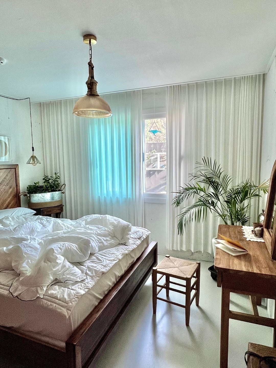 Aewol, Jeju Nestled in the serene and tranquil atmosphere of Aewol, Jeju, Suseowa is a private, sensory stay where you can fully immerse yourself in your own time. Inspired by French countryside homes, the space is finished with natural plaster and furnished with vintage pieces that the host has carefully curated over the years. Every element, from the faucets to the furniture, has been personally selected by the host, creating a warm and meticulously designed ambiance