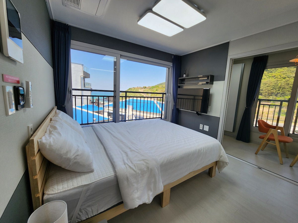 [오션뷰](최대14인) - 객실에서 성산일출봉과 제주바다가 보이는 객실입니다. - 침실1(퀸 +퀸), 침실2(퀸 +퀸) , 온돌방, 거실2개, 욕실2개, 개인수영장, 제트스파2 - 우도가는 종달항 1분, 성산일출봉 10분거리 - 개인수영장 무료(단 온수이용시만 유료 1회 10만원, 냉수는 무료) - 제트스파(온수무료) - 취사가능(단, 다음 손님을 위해 냄새나는 조리 불가) - TV, 냉장고, 인덕션, 전자렌지, 커피포트, 드라이기, 전기밥솥 - 9인 예약시 요세트1채, 10인 예약시 2채 기본제공 - 8인 이하 예약시 또는 유아는 요세트가 기본 제공되지 않으며 필요시 1채에 박당30,000원(사전예약시 5,000원 할인) -숙박기간 동안 객실 정비 요청 시, 비용이 추가 됩니다.(객실 청소 120,000원, 객실 정비 50,000원)