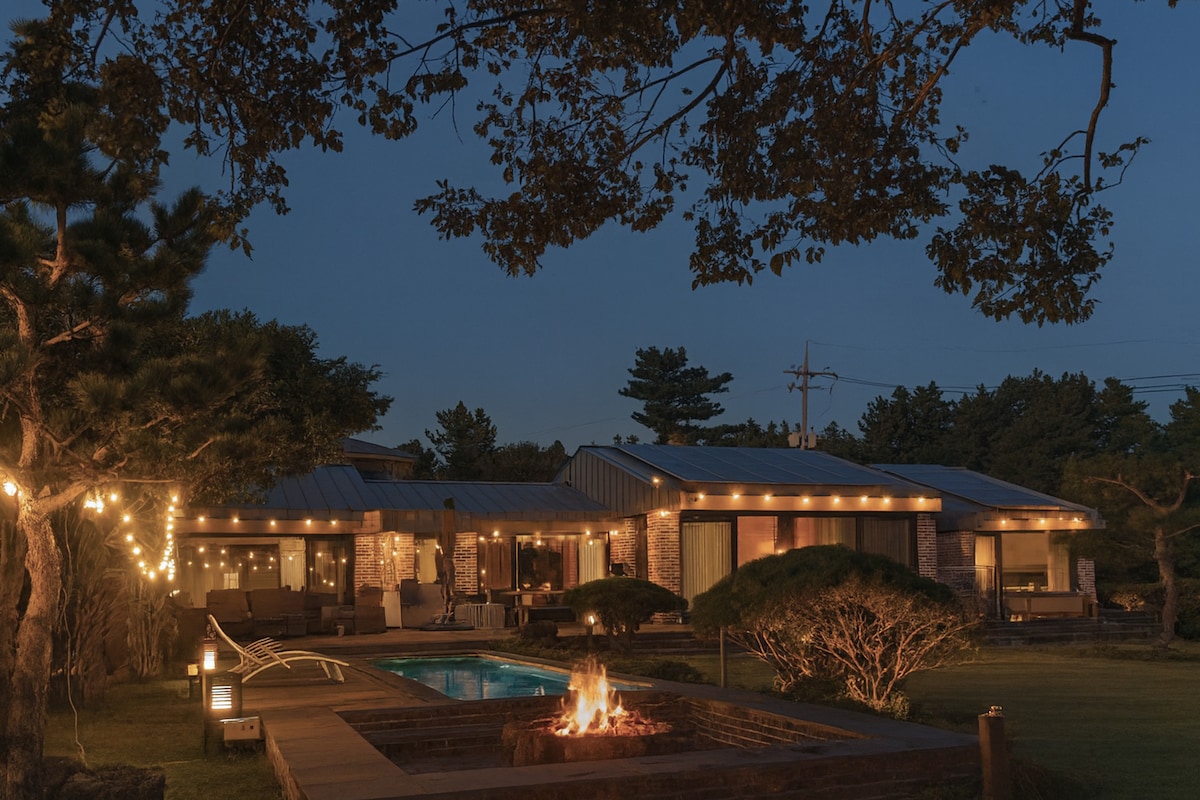야외수영장과 천정 오픈형 실내 자쿠지, 모닥불, 정원이 있는 프라이빗 스테이