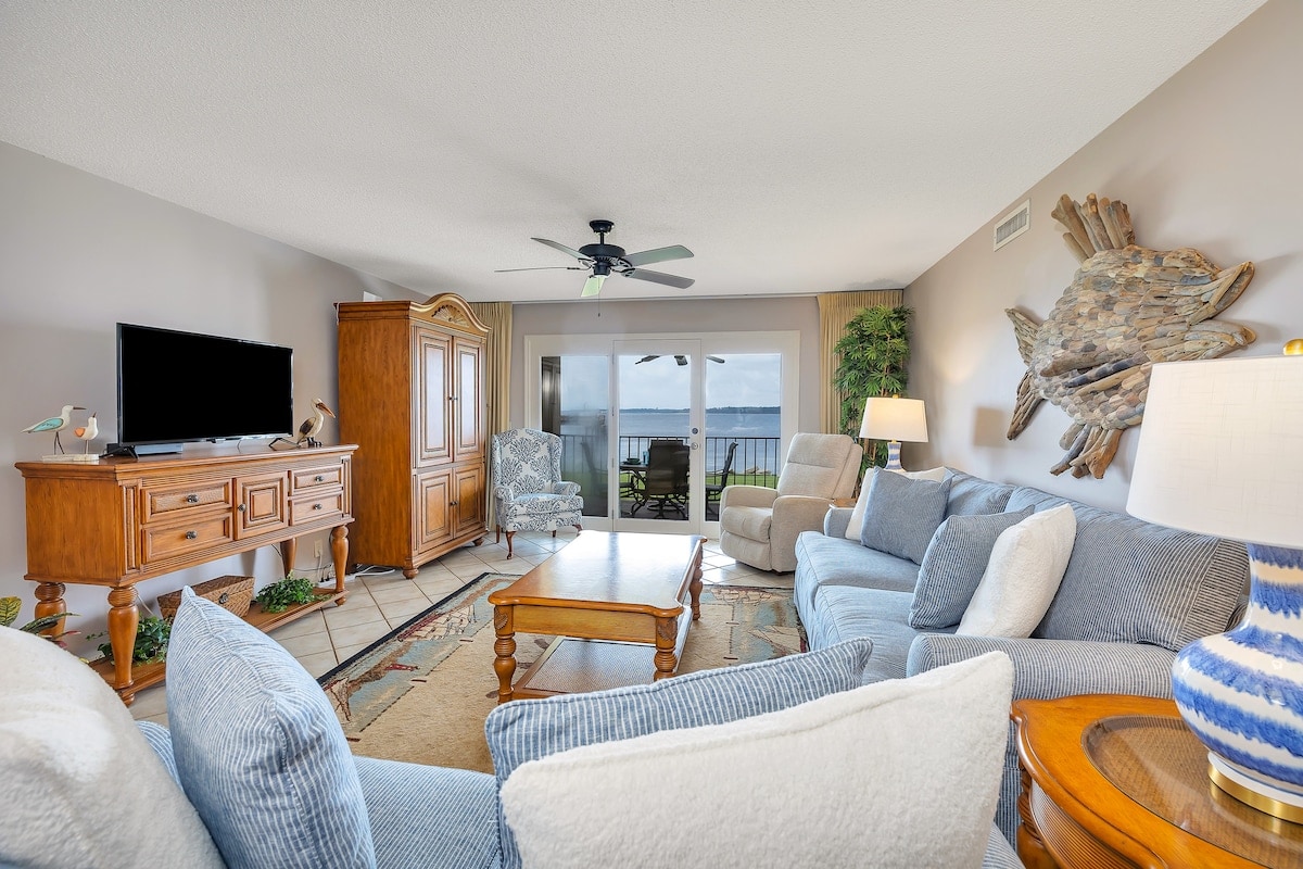 This 2 bedroom condo (#219) has been newly decorated with coastal decor and has all the extras you will need for entertaining while indoors or enjoying the balcony views. Easy access to this unit with elevators from the covered parking area. If you want the perfect stay with amenities and a great location. Look no further. This condo features a fully stocked kitchen, high speed internet, cable tv, washer & dryer, linens and towels.