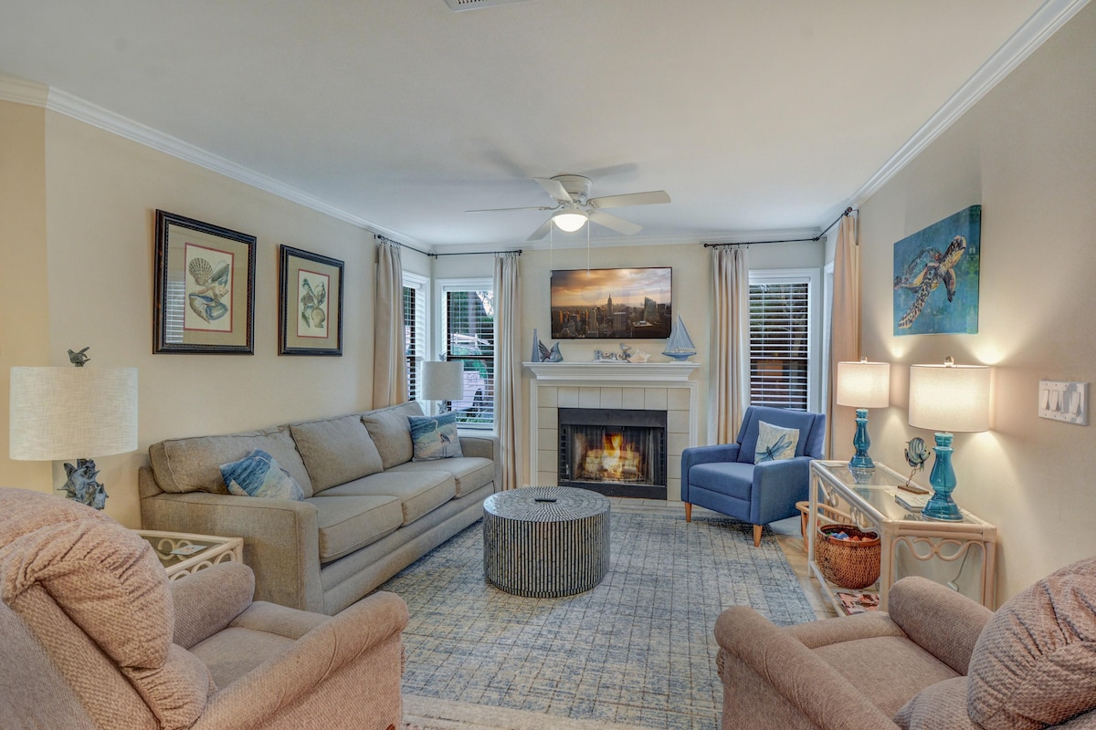 GROUND FLOOR unit~GREAT LOCATION(mid/South Island)~walk to Redfern Village(many shops and restaurants), Southern Soul, Chickfila, Starbucks, etc~quick drive to the beach and pier~NEWLY REMODELED~GATED FAMILY ORIENTED COMMUNITY~ reliable WiFi~TV and sofa in living room~king bed & TV in master~queen bed & TV in spare~twin sleeper sofa in sunroom~pool & tennis court~NO PETS or ANIMALS ALLOWED, SEE RULES FOR HIGH PET FEE. **Parking -- My HOA does not allow work/business vehicles**