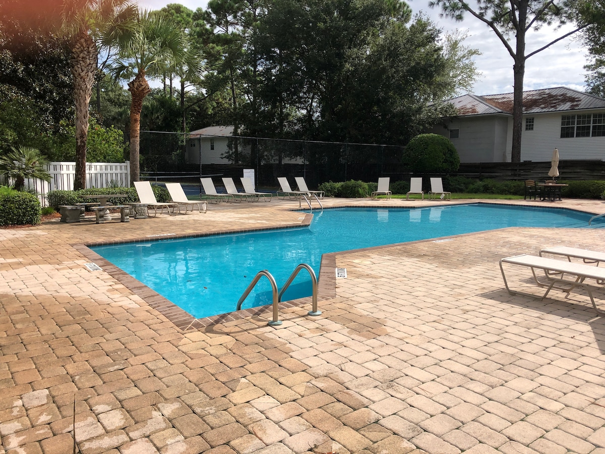 Located on the south end of the island , this spacious condo is convenient to shopping and restaurants. Five short minutes to the beach , fishing pier , lighthouse , village, and golf courses . Has been beautifully remodeled with all the comforts of home . Pool right across from your front door. Fabulous sun deck off the master bedroom . Fenced in patio for privacy to unwind after exploring all the island has to offer . Perfect vacation for family and friends