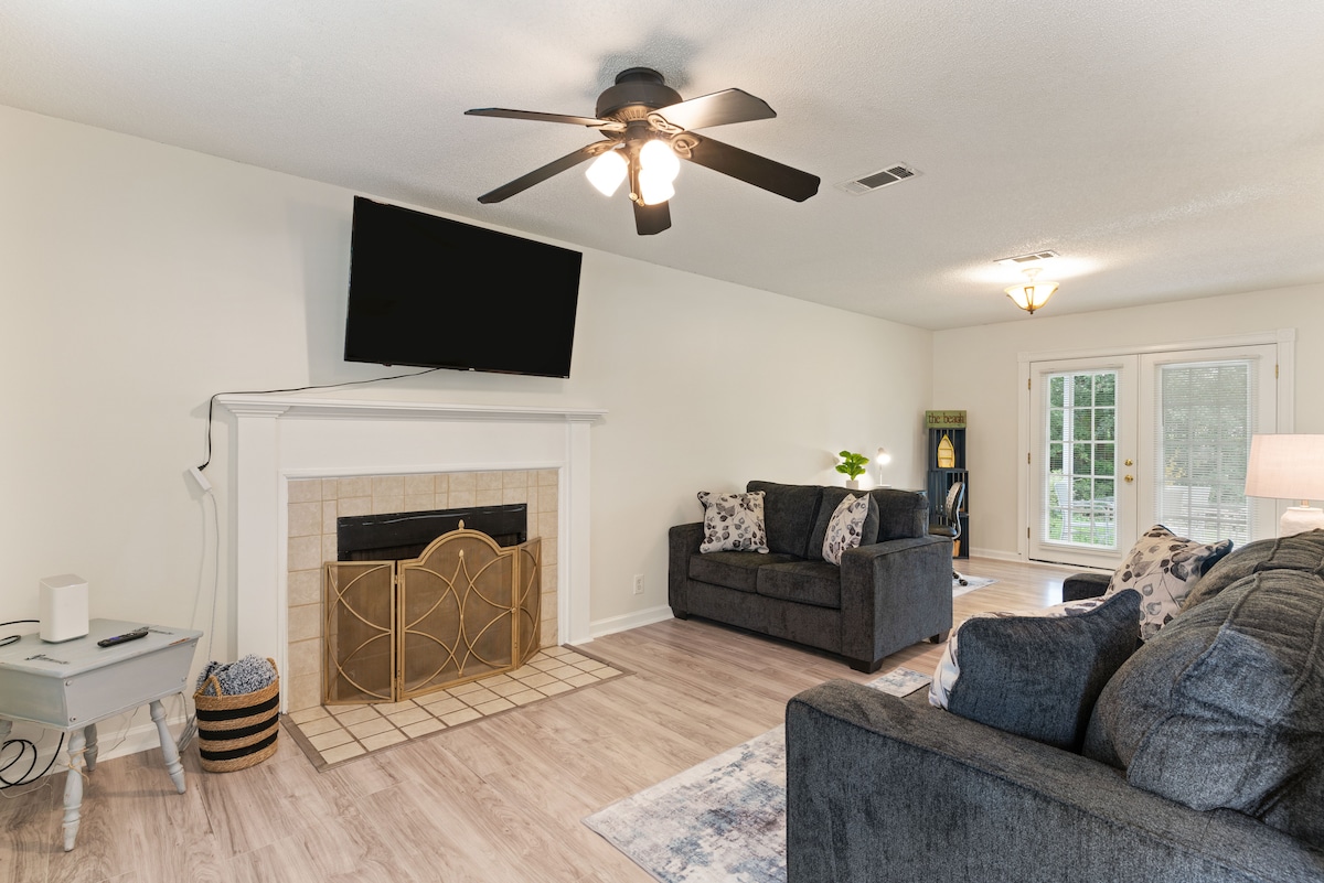 Actually minute walk to beach! 3 bedroom 2.5 bath -Beautiful fenced in back yard with a patio area covered ,with grill, Beach kart and towels chairs included! Located in the heart of popular beach community Restaurants shops markets and more! Block to beach access and minute from Village. Guest favorite on South end . Great king beds and Smart tvs in bedrooms Fully stocked kitchen. Great outdoor space private yard . Beach Restaurants Markets shopping in Popular Beach Community !