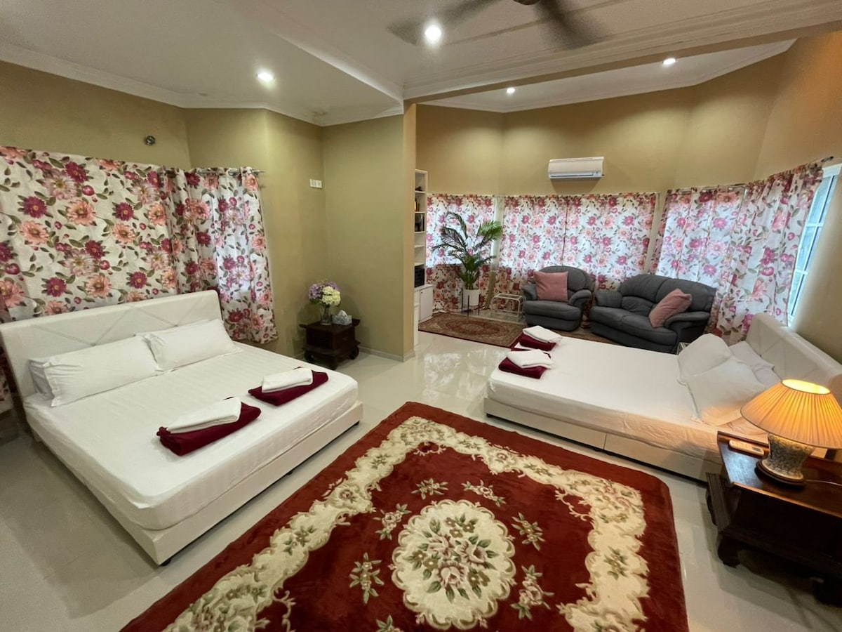 Escape to a tranquil family retreat villa in Lenggeng, Negri Sembilan, just an hour from Kuala Lumpur. This elegant villa offers comfort and luxury for memorable family gatherings. It features four spacious bedrooms with a queen bed, a double-decker bed, air conditioning, and attached bathrooms. Enjoy direct access to a stunning pool, a large dining area, a fully equipped kitchen, an expansive living area with TV and pool table. Surrounded by a serene village, it’s perfect for family bonding.