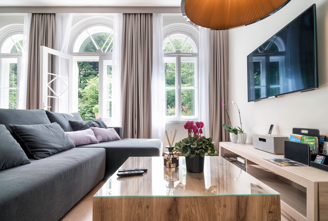 Chcesz rzucić wszystko i wyjechać w Karkonosze? Dom Casa Moderna w Krzaczynie to idealny wybór dla Ciebie. Nowoczesny apartament w okolicy Karpacza z dwoma tarasami i pięknym widokiem na góry. Zlokalizowany przy ulicy Widokowej 10A, wygodnie pomieści 4 osoby. Na powierzchnię ok. 90 m² składają się salon z aneksem kuchennym, dwie sypialnie, łazienka z prysznicem i pokój kąpielowy z wanną. W czasie pobytu masz możliwość korzystania z bezpłatnego, zewnętrznego miejsca parkingowego pod obiektem.
