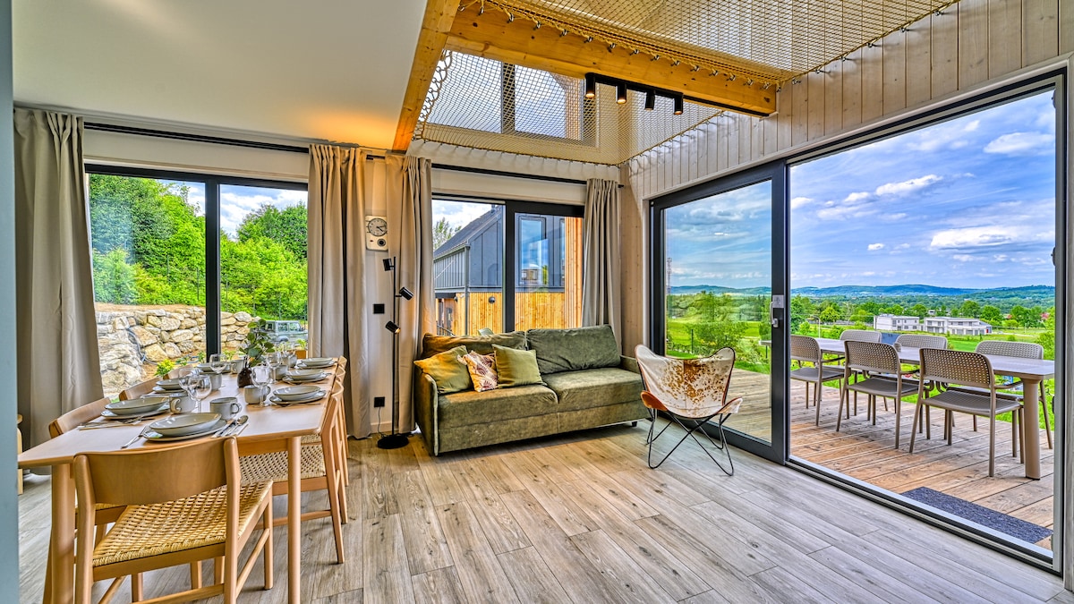 Our 3 holiday mountain lodges are directly located in the giant mountains of poland - in the middle of 2 ski areas Szklarska Poreba & Karpacz. Perfect for hiking, wintersports & nature fans. For that our lodges are perfect prepared with ski wardrobe, shoe dryer, infrared Sauna, hottub, Terrace & private parking space. Closed to us is a very famous waterfall where it is alloud to go swimming. The interior is a very cosy unique design with all modern features - WIFI, smart TV, modern kitchen, ...