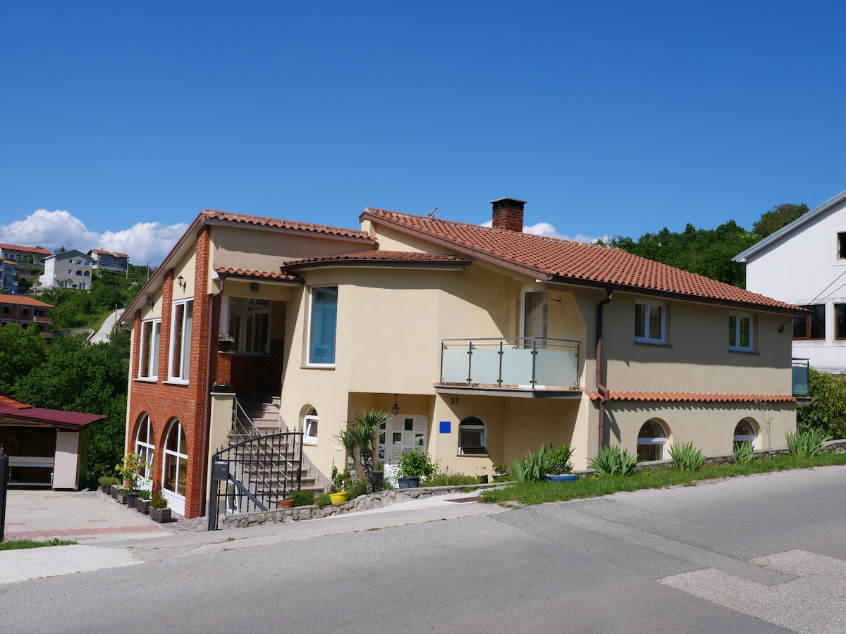 This spacious holiday apartment is situated in a family house, in the hinterland of the Riviera of Opatija and the city of Rijeka. It consists of two bedrooms and a large kitchen with dining and living area. Behind the apartment is a smaller terrace with barbecue and in case of need, you can ask the friendly homeowner, if he provides you the “konoba”, in english: tavern for special occasions.