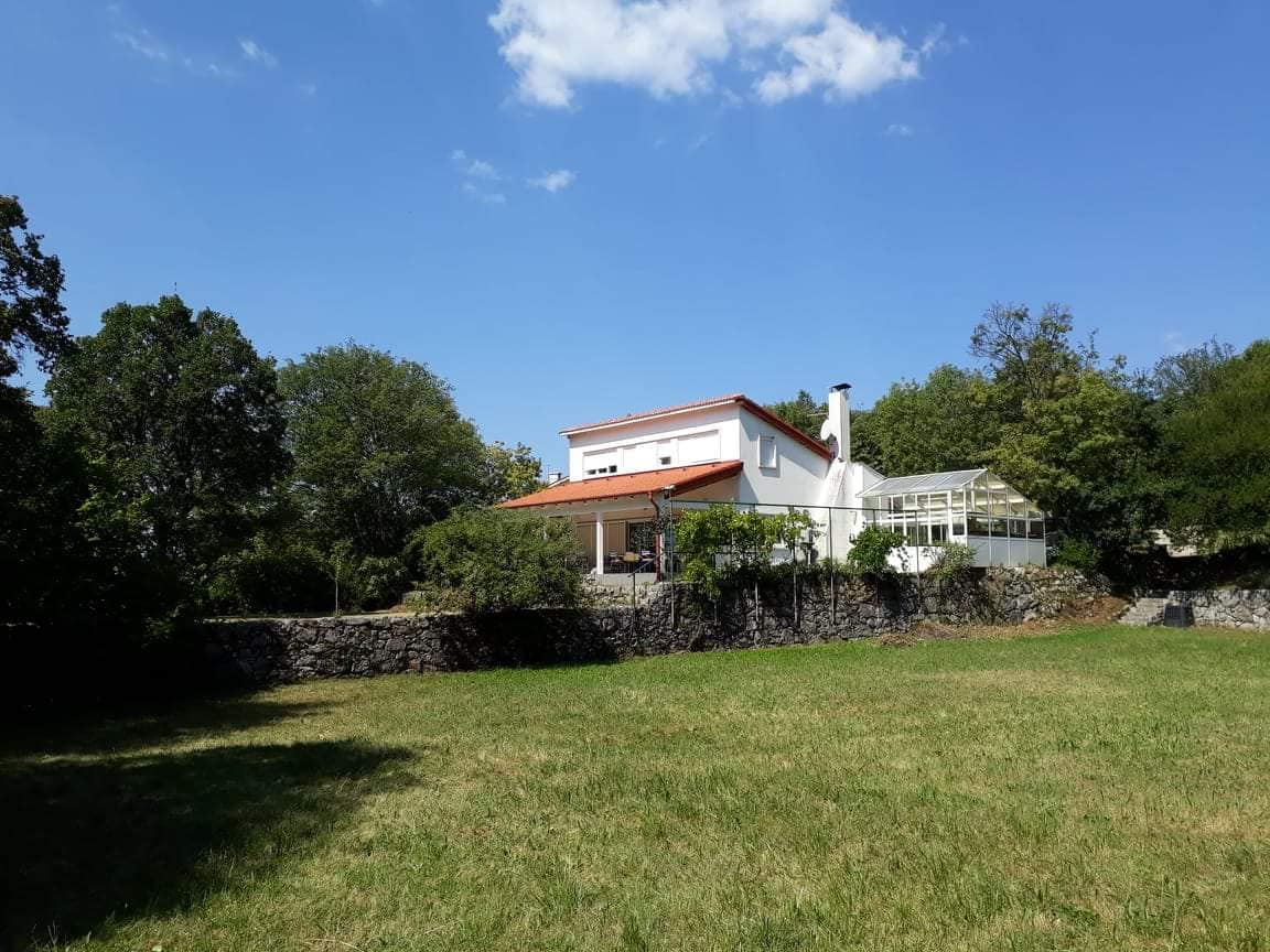 Holiday home in a quiet green setting right on the edge of the forest with sea views! It consists of two bedrooms on the gallery, each with a toilet. The kitchen, dining and living room are in a spacious common area, with a separate bathroom. Two spacious terraces, of which the rear terrace is covered and enclosed, which houses a large barbecue, pantry and garage. The front terrace offers views of the forest and greenery on one side and the Kvarner Bay on the other.
