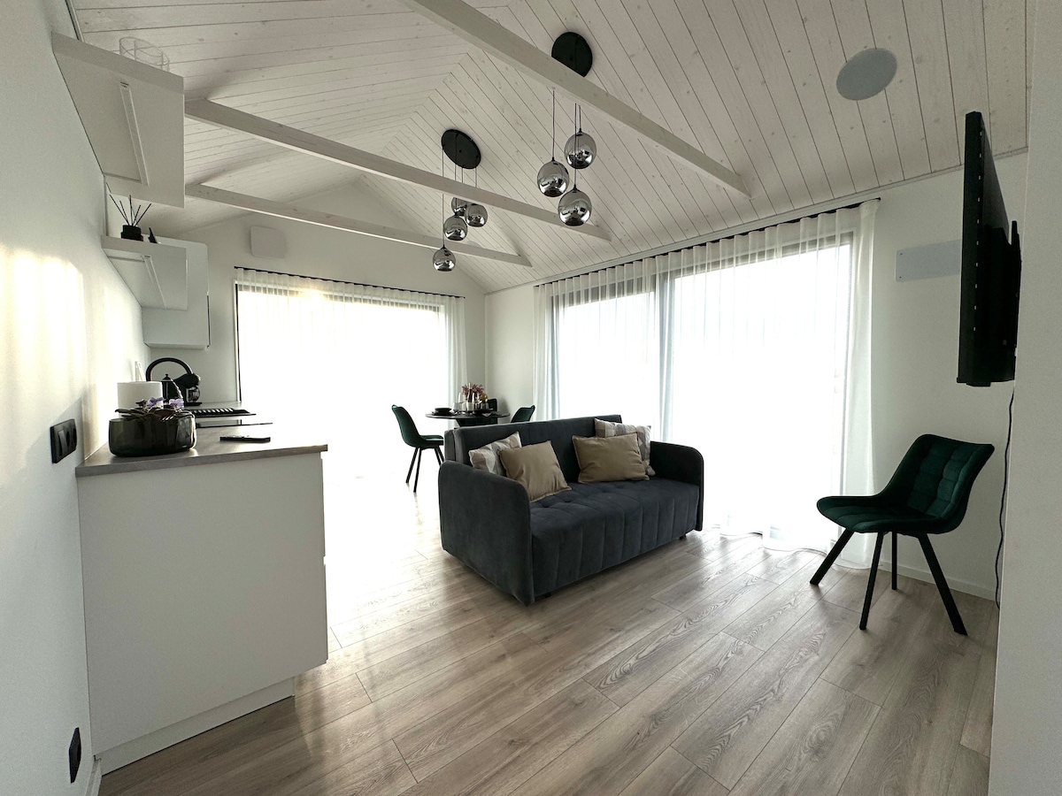 Stylish and cozy house by the pond 🌿 Perfect for family relaxation — 2 adults and 2 children (king size bed 🛏️ and comfortable sofa bed 🛋️ 150×200). 🎶 Bluetooth audio system throughout the house 🌡 Heated floors for extra comfort 🌘 85% blackout curtains for a restful sleep 💨 Ventilation system with forced air exchange 🌌 Relaxation room with a starry sky ceiling 🌊 Clean, well-maintained pond just steps from the terrace 🚗 Automatic gates and private parking 🔑 Self check-in and check-out
