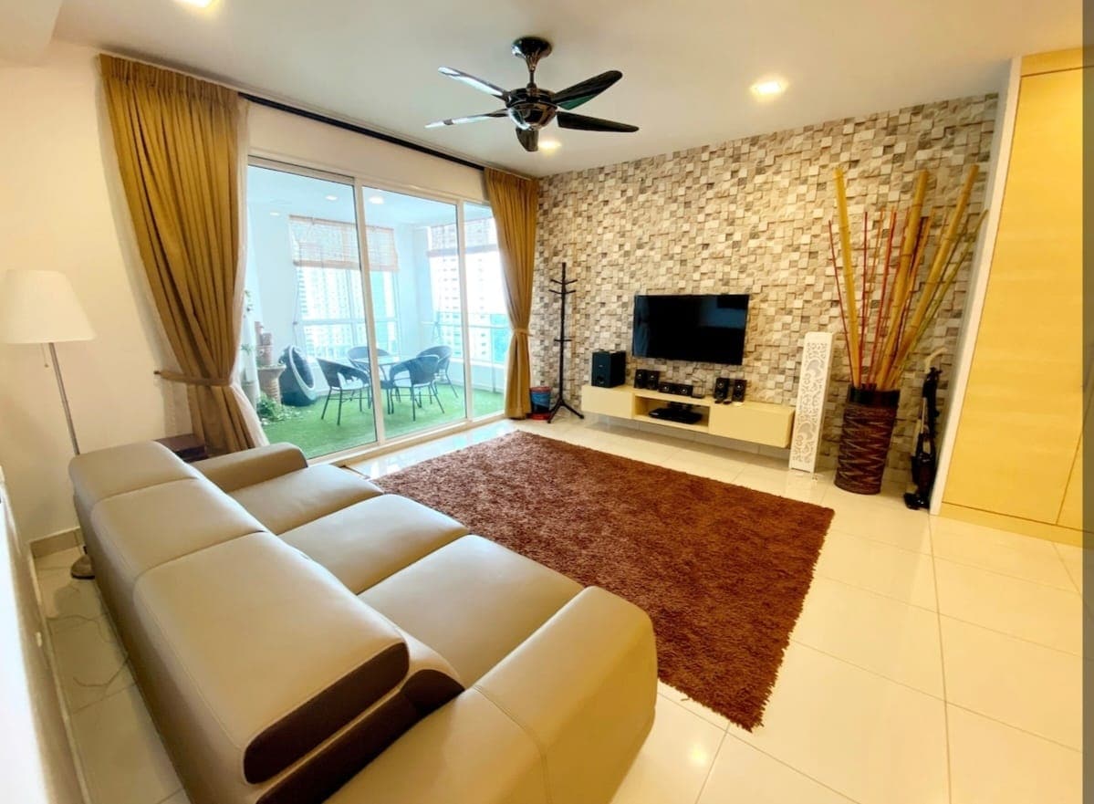 我们家是一间位于完美地段的海景套房。 让你可以离开烦嚣,与大自然海景共处的舒适休息环境。 温暖舒适,精致的室内设计,配上无限高速Wifi 和提供安全饮用的过滤水机。再加上9楼露天海景泳池,难怪很多客人都告诉我们,他们好想就赖在家里不出门啦 ^_^ 其实我们家里离市中心(乔治市世遗古迹区)才5公里而已,乘车15分钟就可以去找壁画拍照打卡啦! 走吧,动身,出门找美食咯~ 步行 : - 日式 /韩式餐馆/ 7-11 (24小时)便利店,都位于底楼(Ground Floor) - 巴士车站 > 1分钟 - 阳光超市 > 5分钟 - 肯德基快餐店 / Watsons药房 > 5分钟 - 星期五夜市 > 5分钟 乘车 : - 美食中心 > 10分钟 - 麦当劳 (24小时) > 10分钟 - 星巴克 > 10分钟 - 乔治市UNESCO世遗区(街头壁画) > 15分钟 - Sungai Nibong长途巴士站 > 15分钟 - 槟威大桥 > 15分钟 - 槟城国际机场 > 25分钟 - 升旗山 / 极乐寺 > 25分钟 - Batu Feringgi 海滩 > 30 mins