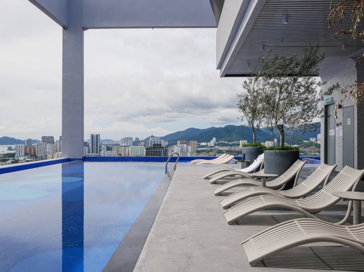 🏢 Stay at 22 Macalisterz Penang — a stylish high-rise in the heart of Georgetown with Komtar views. ✨ Why Guests Love It: 🏊♀️ Sky Infinity Pool & Jacuzzi with Sea & mountain views 💻 Co-Working Space & FREE High-Speed WiFi 📍 Walk to Komtar, local cafés, Gurney Drive & heritage spots 🛏️ Modern, cozy unit with self check-in & smart TV 🚉 Easy access to public transport, 24/7 security, rooftop gym & convenience stores. 🔥 Perfect for business, leisure, or a relaxing city escape. 🌇✨
