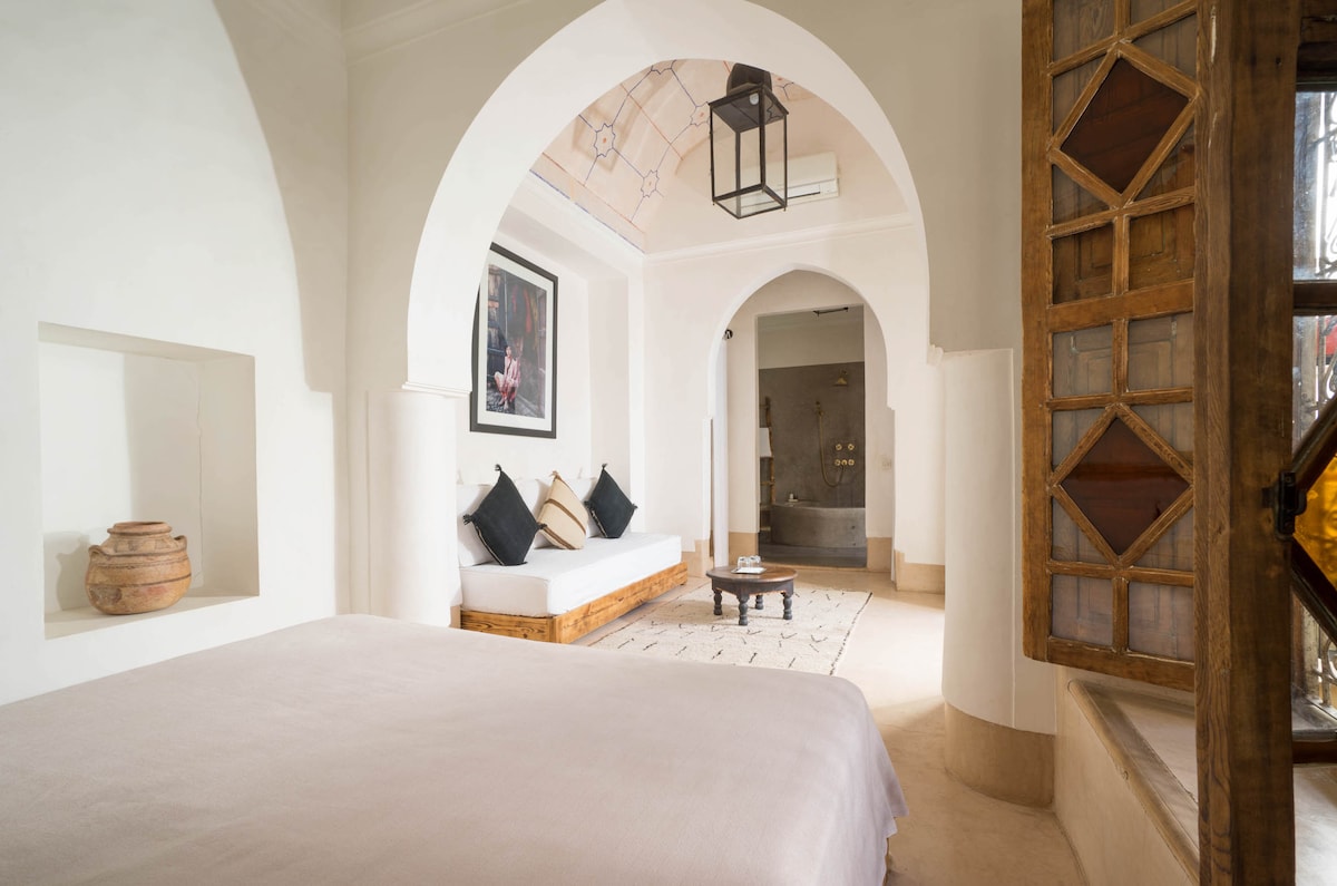 A fully private riad in the heart of the Medina, designed to accommodate up to 6 guests in a discreet and comfortable setting. More than just a place to stay, this riad is a true experience. An elegant home where natural light enhances the patio and where Marrakech is discovered from a more intimate perspective. Renovated with care and high standards, in respect of traditional architecture, the riad blends authenticity with a warm atmosphere to offer a refined and soothing stay.