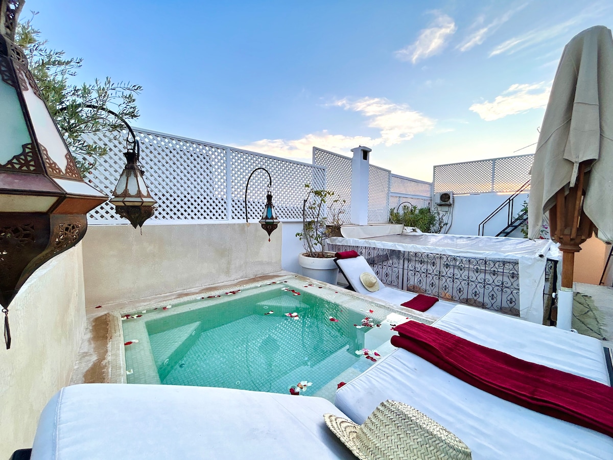 Dar El Hachmia is an authentic hidden gem. It was Hachmia's home (old Berber name). It dates back to the 14th century. It was restored with traditional materials and ancestral techniques, and offer all modern comforts. In the heart of the Medina, peaceful atmosphere, and unique style are its greatest assets. The entire riad is available, with 3 bedrooms with private bathrooms. It includes a refreshing pool in the patio, heated pool on the rooftop and Hammam for an experience of the lifetime.