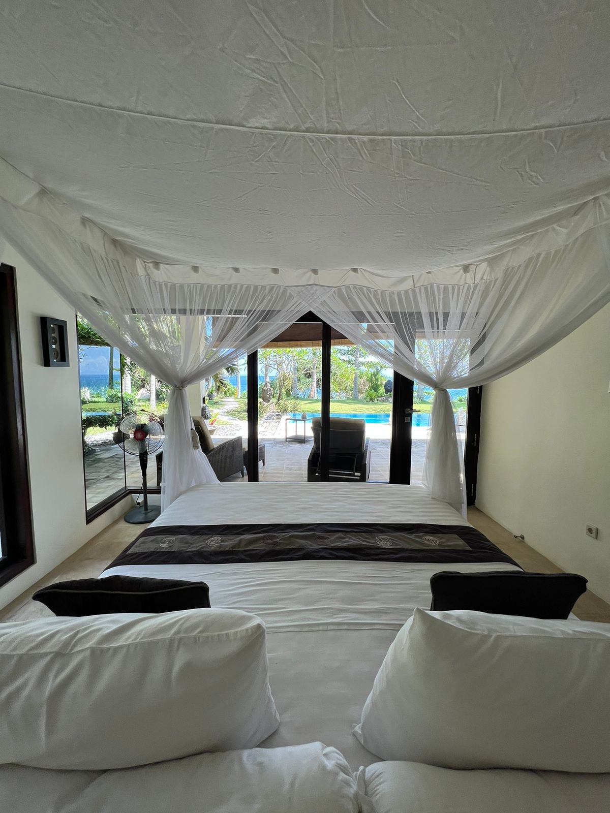 Bali Villa Sheeba, North Bali Beach Ocean views, beautiful living spaces, and charming interiors make Villa Sheeba a paradise in North Bali. This incredible vacation rental beachfront villa with three-bedrooms is only steps from the Bali beach. Soak in the pristine beach and sunshine and revel in the sunset views with up to 6 guests.