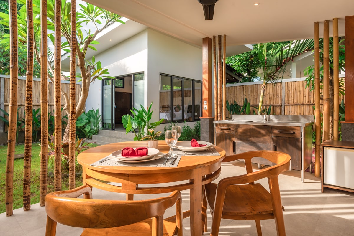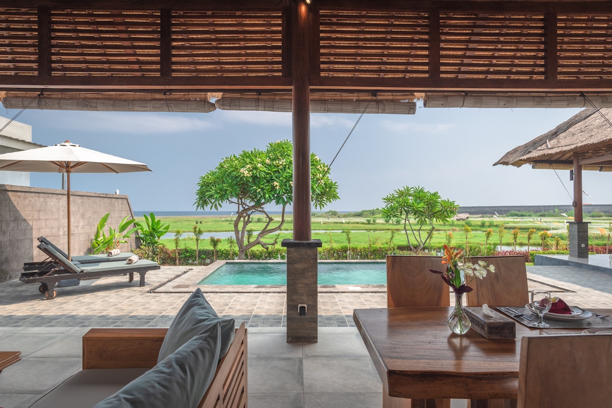 Enjoy a tranquil and authentic Balinese stay in this private 2-bedroom home nestled in the heart of West Bali. With a breathtaking rice field view & a warm morning sunrise, it’s the perfect escape for guests seeking peace, comfort, and local charm. - Spacious living room & fully equipped kitchen - Rice field view - Peaceful sunrise atmosphere every morning - Only minutes away from Delod Brawah Beach - a minute drive to a24-hour minimarket - Near the lively Tegal Cangkring traditional Market