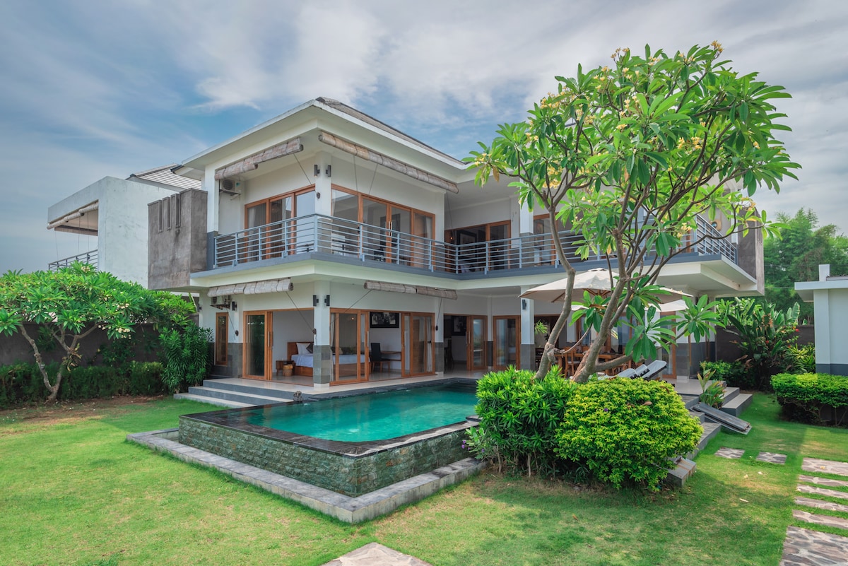 Welcome to my home, Medewi! My house is located in the rice paddy in Medewi, yet only 3 minutes by motorbike away from Medewi Point. The house has 5 bedrooms, 2 with pool view on the first floor and 3 with mountain view on the second floor. Be prepared for a peaceful mountain and rice field view. The house is a great escape if you are looking for a laid back place after surfing. It's a perfect getaway for friends and families.