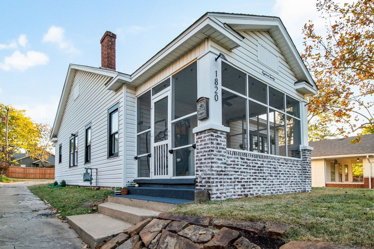 Experience Tulsa's best with a stay in this fully-restored 100 yr. old home. Located blocks from Cherry St, Utica Sq, Mother Road & Medical centers, you won't find a better location! Large yard for (non-shedding) pets, outdoor space with hot tub and 3 parking spots. 3 oversized bedrooms and 2 full baths. Host a dinner party in the dining room and cozy up for a movie night in the stylish living room. Beautiful, peaceful screened in front porch. Disabled accessible.