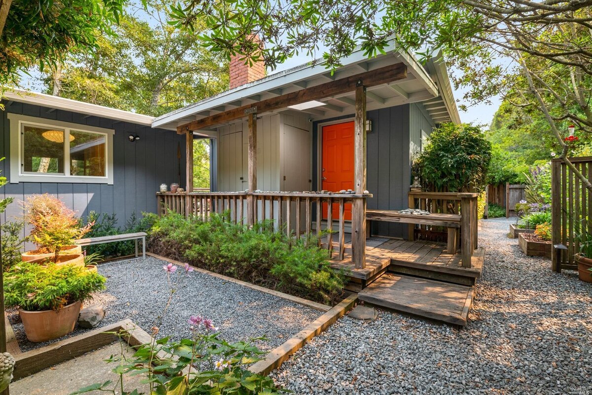 Tucked away among Monte Rio’s majestic Redwoods, Cottage C is a peaceful & thoughtfully designed escape, perfect for relaxation & nature lovers. This charming getaway features a private hot tub under the trees, a cozy wood-burning stove, & a beautifully designed interior with everything you need for a rejuvenating stay. Once inside the gated yard, you’ll feel like you’re in a world of your own, surrounded by Redwoods & the soothing sounds of a seasonal creek.