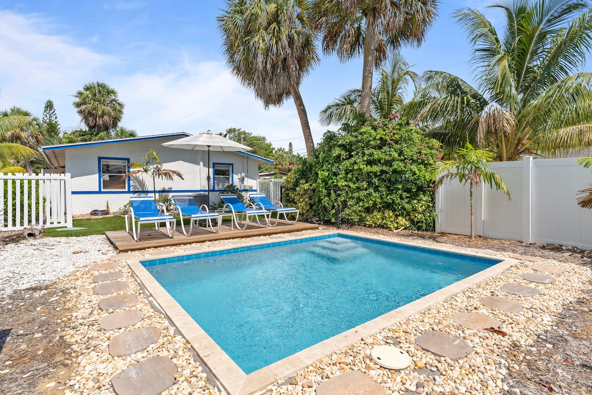 Fabulous 2 bedroom home with a private salt water pool. Whether traveling to Stuart for work or pleasure, you will love the relaxed vibe of this home. Great outdoor spaces for enjoying the beautiful weather with a private fenced front yard area and pool and backyard area. We are centrally located with a 10 min drive to the beach and downtown. We are within walking distance to restaurants, nightlife, grocery shopping, medical center, pharmacy and other shopping
