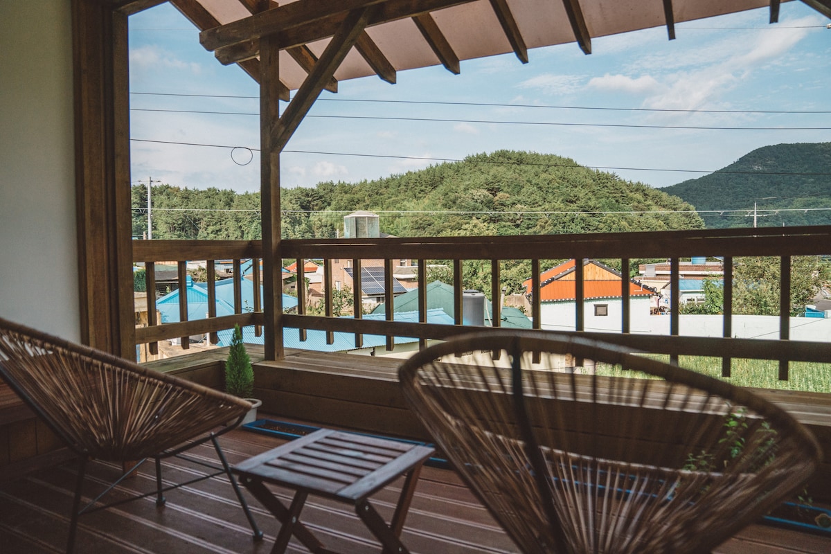덕유산국립공원과 무주리조트의 번잡한 관광지에서 조금 벗어나 민주지산 삼도봉 아래 420 m 고지에 위치한 여러 과일나무들이 자라는 전원주택입니다. 태권도원, 반디랜드는 10분,덕유산 무주리조트는 25분 정도 걸립니다. 마을 뒷산에선 천혜의 계곡을 즐길 수도 있습니다. 엉클하우스는 서울의 명성있는 목조건축회사에서 직접 설계하고 시공한 최고 단열의 미국식 목구조 건물입니다. 천정이 높고 여름은 시원하고 겨울은 따듯한 집, 사방팔방 높고 탁 트인 뷰, 별뷰와 함께 불멍을 즐기기 좋은 핫플입니다. 1층은 호스트 부부 공간이고, 2층 56m2(테라스 포함)가 게스트하우스입니다. 별도의 출입구가 있고, 호스트가 있어서 불편한 집이 아니라 즉각즉각 도움과 서비스를 받을 수 있어 더욱 호평받고 있습니다. 엉클스타일 바비큐는 본고장 미국인 가족이 '어메이징'을 연발할 정도며, 엉클댁의 곁들인 음식 솜씨는 자타공인 일품입니다. 단독으로 사용하는 야외 벽난로를 갖춘 썬룸은 단연 최고입니다 ♡